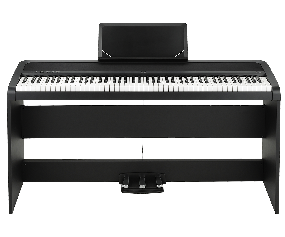 The Korg B1SP Digital Piano is an 88-key entry-level instrument package that includes a dedicated furniture-style stand and a three-pedal unit. It is designed for beginners and intermediate players who prioritize an authentic piano feel and rich sound over complex digital features.