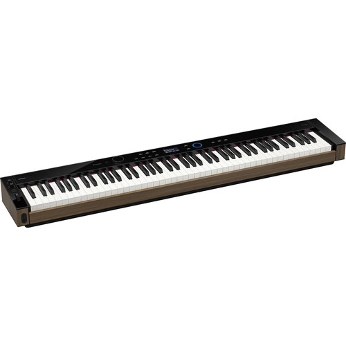 The Privia PX-S6000 is equipped with a large LED touch ring, bright backlit LCD display for easy navigation, and a microphone input with DSP effects to capture your vocals. Easy-to-use performance features include an arpeggiator function, two assignable control knobs, and a pitch-bend wheel to manipulate your sound in real time. The USB audio/MIDI interface and onboard MIDI and audio song recorders allow composers to capture their performances on the fly. The included WU-BT10 adapter adds Bluetooth wireless connectivity, allowing you to use the Casio Music Space app or the speakers to play music from a smartphone or tablet. Two headphone jacks are provided for quiet practice alone or with a partner. For portability and convenience, the piano can be powered either via eight AA batteries or the included power adapter.