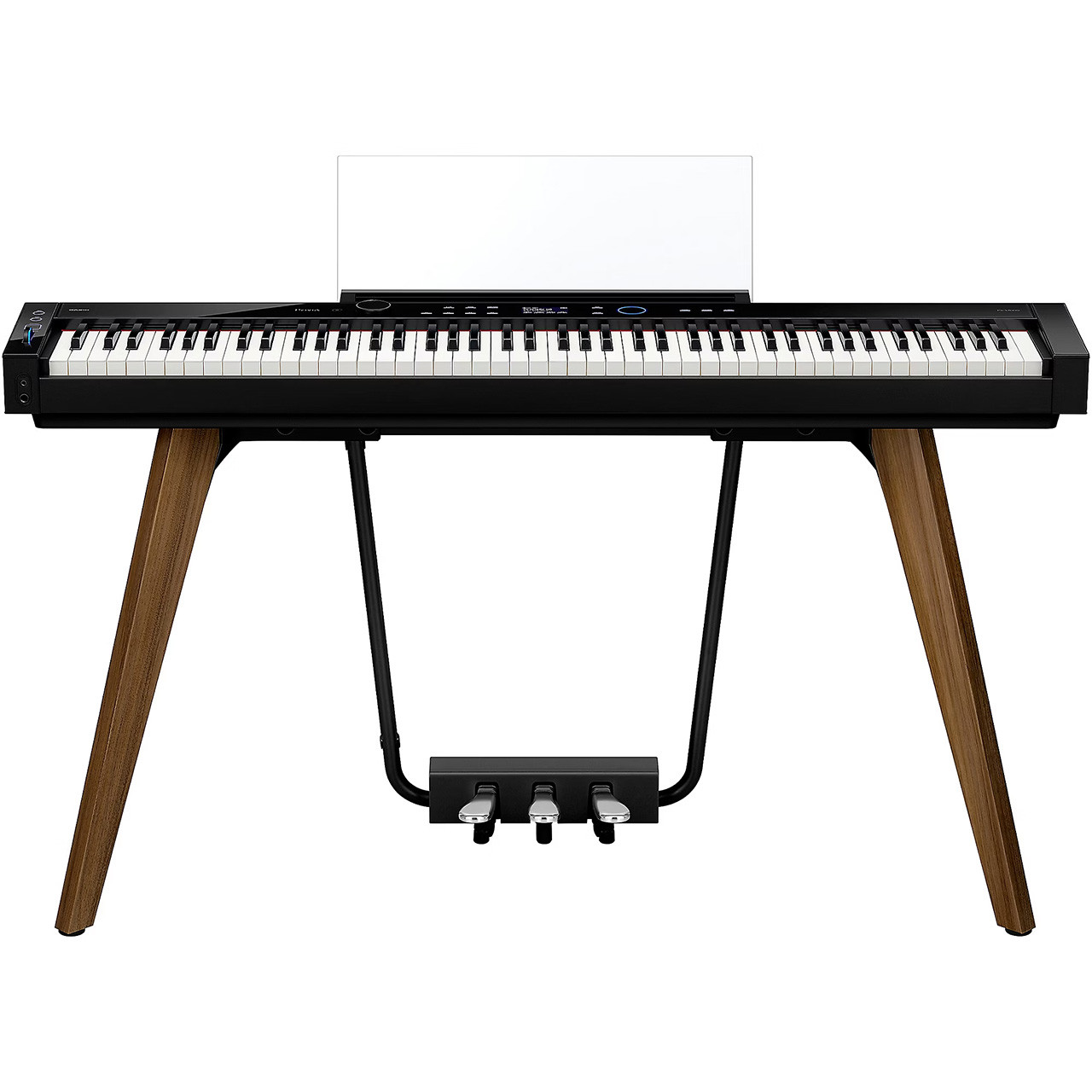 - The PX-S7000’s wooden stand features a beautiful, modern design that blends seamlessly with any décor. It includes three generously sized pedals, fixed in place exactly as you’d expect them on a traditional piano. In order to achieve all-round smoothness, the back of the piano is lined with speaker fabric, which also covers the speakers and gives the piano a sleek look even from the back.