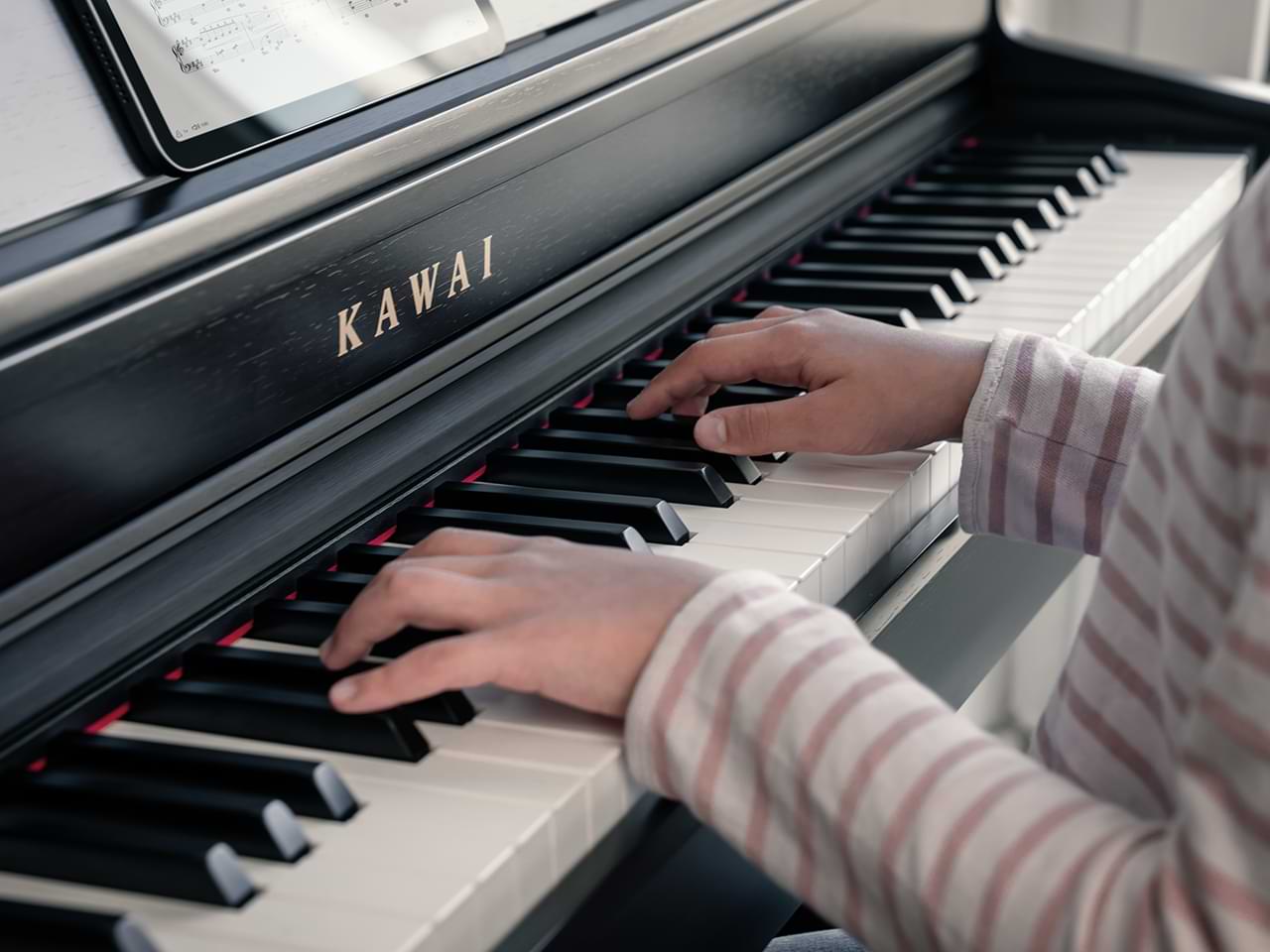 The CN301 is the latest addition to Kawai’s CN series of mid-range pianos. Building on the popularity of its predecessor, the CN39, the new CN301 has features normally found on top-of-the-line instruments. The renowned Responsive Hammer III action has been upgraded to reduce action noise and improve stability. The Shigeru concert grand piano has been refined, resulting in the best concert grand sound in a mid-range digital piano. The CN301’s crisp, clean sound system delivers unmatched tonal clarity and superior sound. New diffuser panels mounted to the top-facing speakers project the sound in all directions for a more acoustic piano-like effect. The unique ‘Low Volume Balance’ feature intelligently adjusts the characteristics of the piano for the most favorable expression when playing at low volumes. Both Bluetooth MIDI and Bluetooth audio are incorporated for a variety of wireless applications. The CN301 joins other Kawai models by supporting Kawai’s Piano Remote and Pia Book Player apps which allow settings, sounds and lesson scores to be accessed from an iOS or Android smart device. The redesigned control panel has a more intuitive layout which compliments the large OLED display.