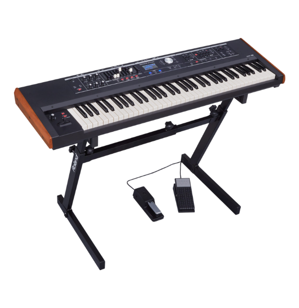 The V-Combo VR-09B 61-Key Live Performance Keyboard from Roland is a 61-key music workstation designed for use by the gigging musician, both live and in the studio. The dedicated organ, acoustic/electric piano, and synth engines are organized in three sections on the front panel. The VR-09-B includes all these sounds and weighs just 12.1 lb, making it easy to carry and set up. It has seven simultaneous effects that include rotary, delay, reverb, tone, overdrive, compressor, and MFX.
